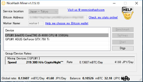 まずはBITCOINの採掘と呼ばれるマイニングに挑戦しました。