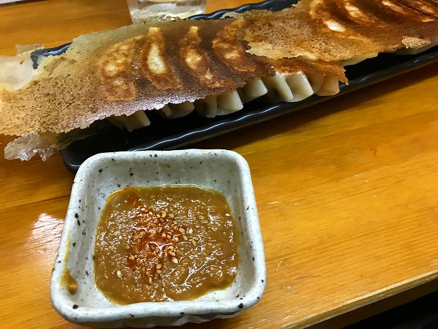 普通のギョウザは味噌だれに付けて食べます、これは美味いです。