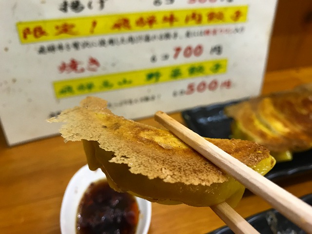 上の写真は飛騨牛ギョウザ。飛騨牛というだけで美味しさUPです。