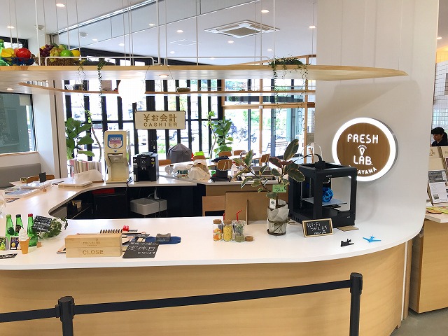co-baでのミーティングの翌日、お伺いしたのは地元スーパー駿河屋さんの店舗にあるファブラボ「FRESH LAB」。