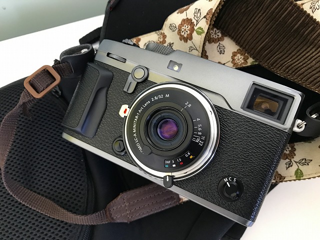マウントアダプターを介して装着したLOMOレンズとX-Pro2のオールディなたたずまい。昔のカメラっぽく見えますが最新のデジカメなんです。