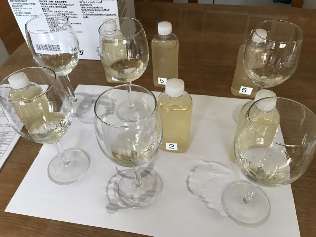 そして第1回目のテイスティングとして白ワイン6種を行いました。