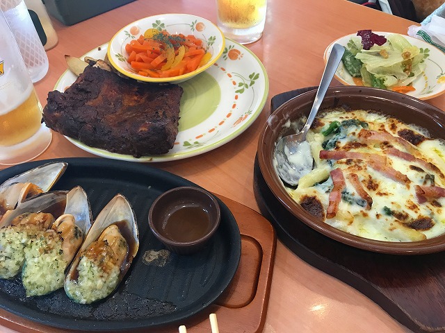 まずは定番のムール貝のガーリック焼き。これは毎回オーダーするメニューで、きざみタマネギとムール貝の相性が抜群です。