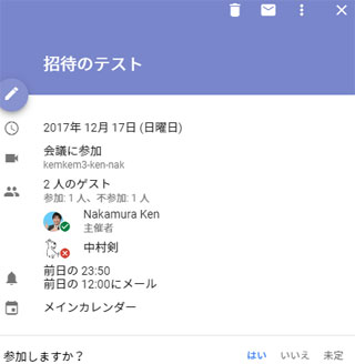 スケジュール共有も強化され、会議などへの参加通知が送れるようになり、その返信状況も簡単に閲覧できます。