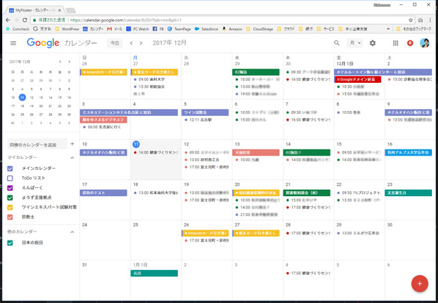 これが従来のGoogleカレンダー。見慣れた画面です。