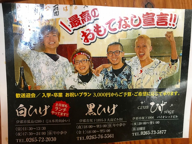 先日訪れた伊那市の居酒屋「白ひげ」。串揚げと海鮮が自慢のお店です。