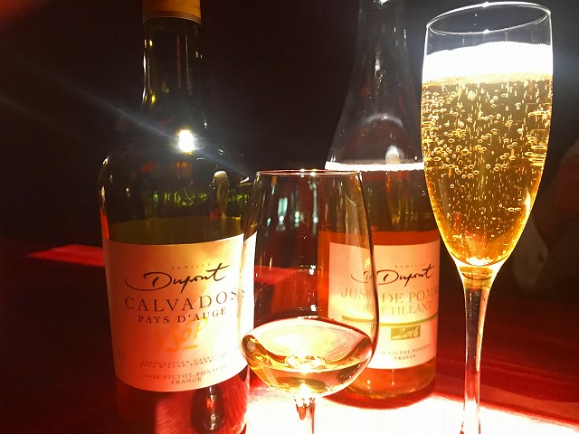 そんな話をバーのマスターとしてたら出してくれたのが、発泡性のブドウジュールにカルバドスを入れてスパークリングにしたもの。カルバドスのいい香りとリンゴジュースのやさしい甘みがなんともいえません。