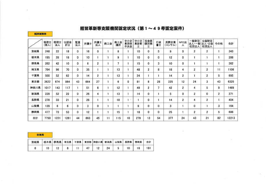 関東経済産業局配下(1都10県)でこれまでに12,213件が支援機関として認定されており、その約7割の8,971件が税理士となっています。ちなみに中小企業診断士は279件で2%と少数です。東京都でさえ中小企業診断士の認定支援機関登録は81件と税理士・公認会計士・弁護士と比べて桁が違っています。