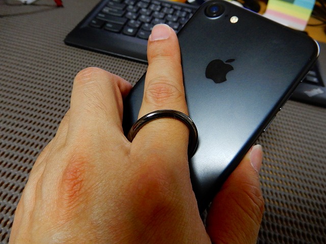 貼り付け位置を決めるのに手こずりましたが、位置決めが終わればリングを指に通して使う分にはしっくりきます。リング自体の厚みもそうはないので違和感は感じません。これはなかなかイイ感じです。