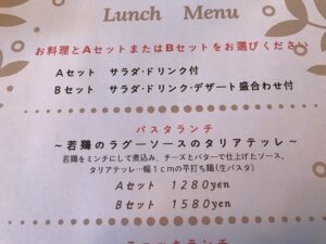 今回ランチでいただいたのは、パスタランチのBセット(デザート付き)。