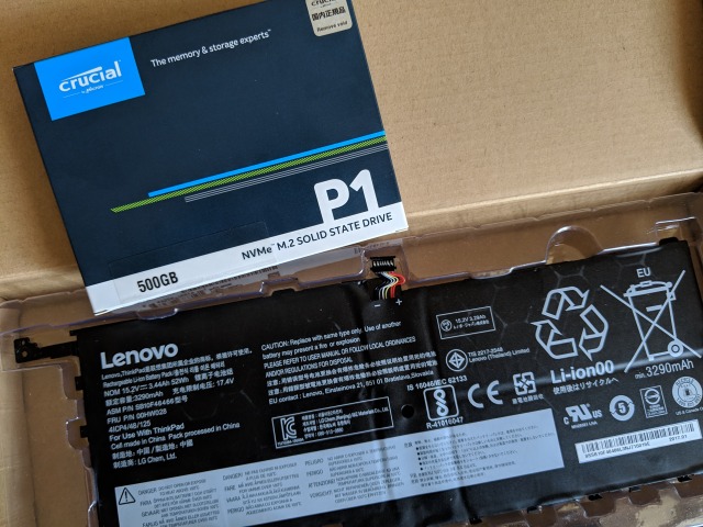 部品としては、純正バッテリー(約1万円)、500GBNVMeSSD(約1万円)の合計2万円。
