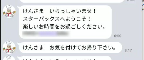 お店に入店する(LINE Beaconに近づくと)、「いらっしゃいませ」とメッセージを出し、