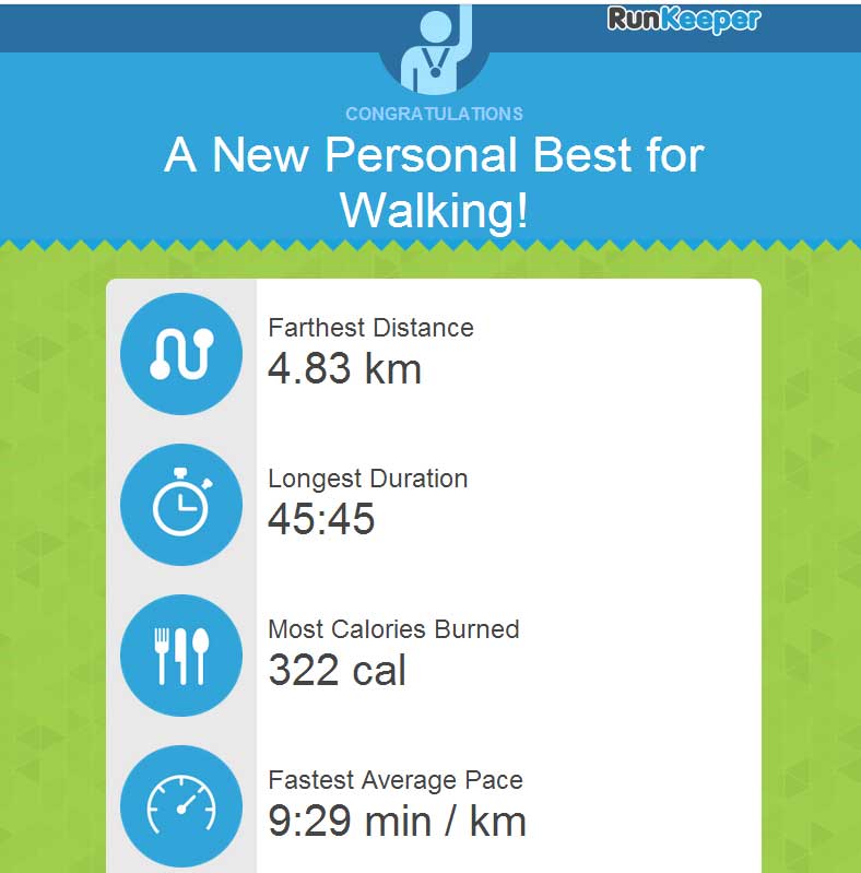 FacebookやTwitterとも連携し、毎回のアクティビティ(運動)を投稿できますし、目標に達したらおめでとうのメールも届きます。