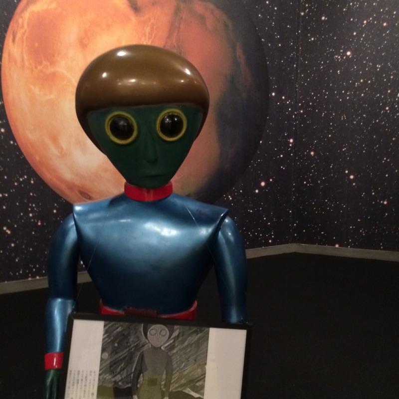 中は写真も取り放題っぽく、おじいさんにiPhoneで宇宙人との2ショットも撮っていただいた。