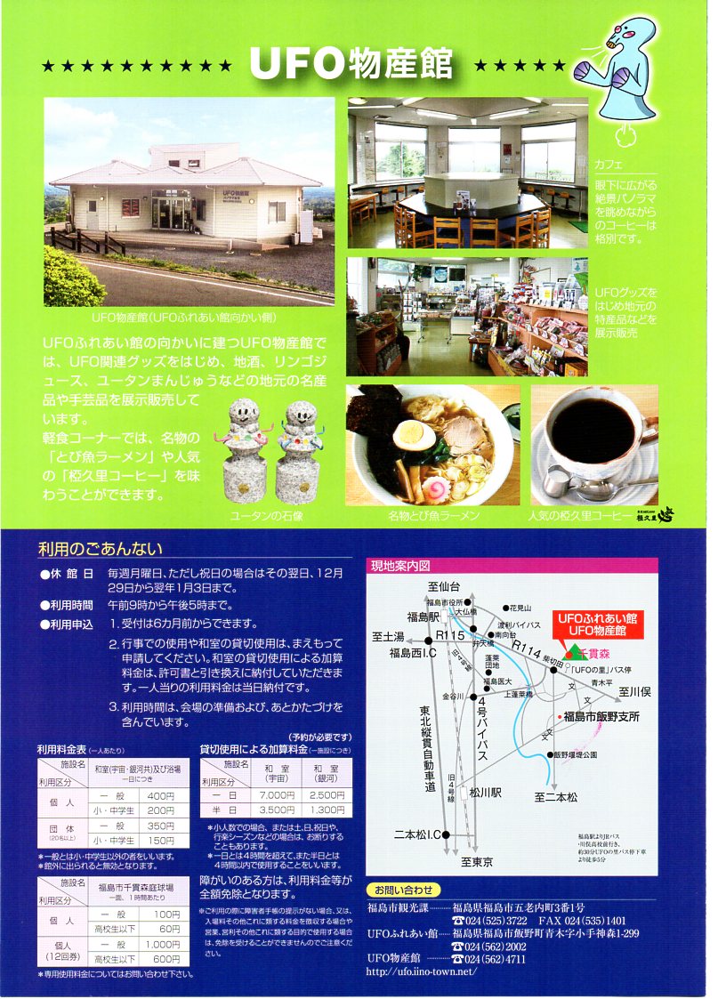 いったいこのふれあい館は誰がやっているのかというと、福島市観光課や地元の振興公社であった。官をあげてUFOに取り組んでいるとは恐れ入った。