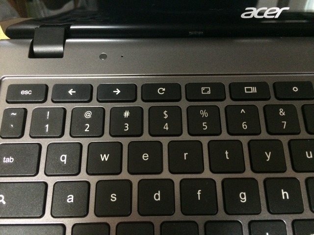 キーボードは米国仕様のUSキーボード。ファンクションキー部分はブラウザの操作キーになっています。