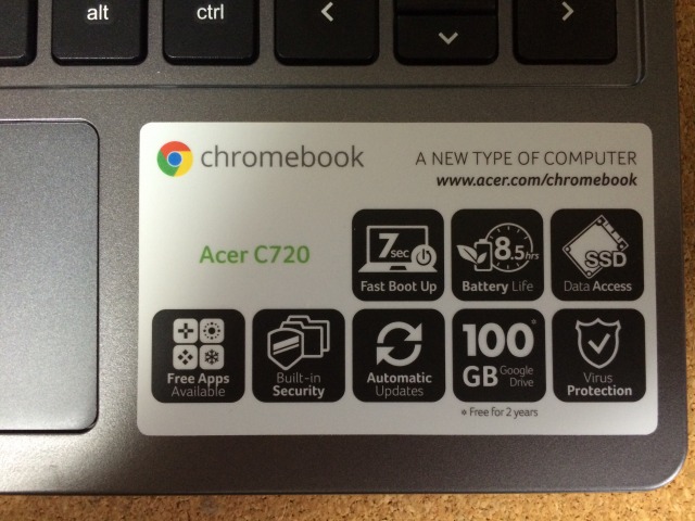 Chromebookは見た目はいわゆる普通のノートPCですので、ちゃんとしたキーボードが付いています。