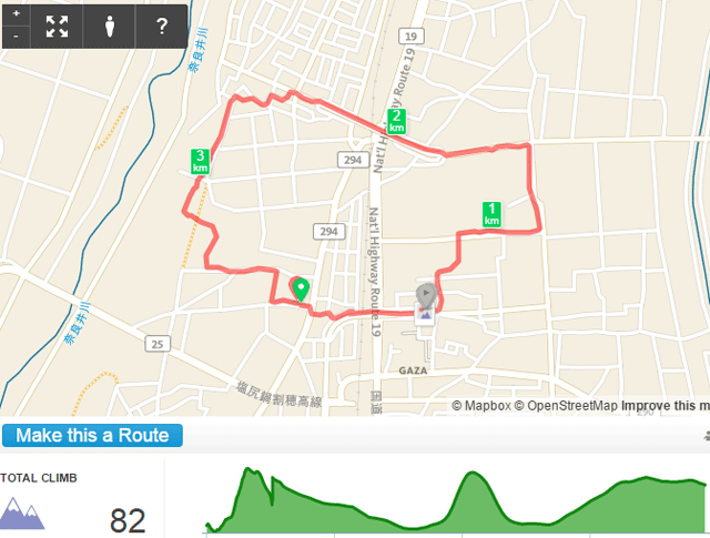 ①長者原公園コース・・・自宅から国道へ出て長者原公園を回って帰ってくるコース(国道沿いの自動車ディーラーを見学できる)