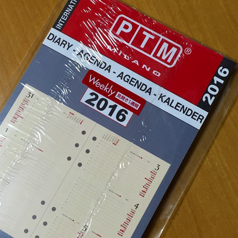 システム手帳がPTM製というのもあるのですが、なんとなくイタリアってのがおしゃれっぽいことと、日本用になっておらず、ワールドワイド共通仕様になっているところも面白いところです。