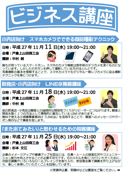 11月11日、18日と戸倉上山田商工会で集客力UPセミナーということで