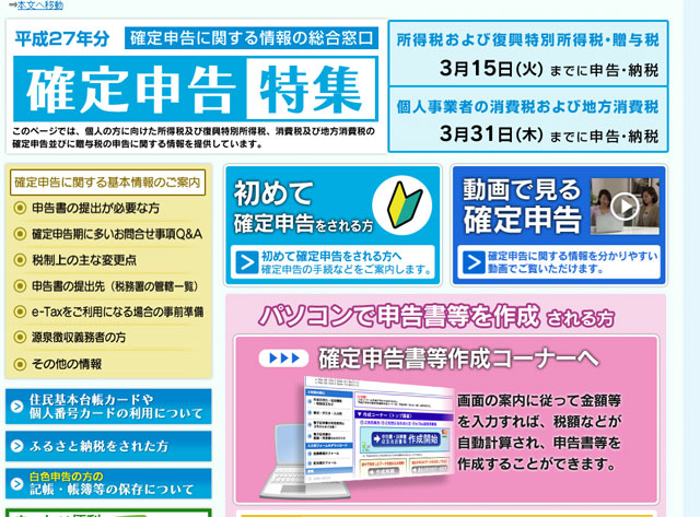 ①平成27年度確定申告特集ページ