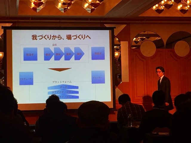 写真にもあるように、プロデューサーとプレイヤーが活躍する舞台(プラットフォーム)を作り、そこでどんなアクティビティを行うかが大切と強調されてました。
