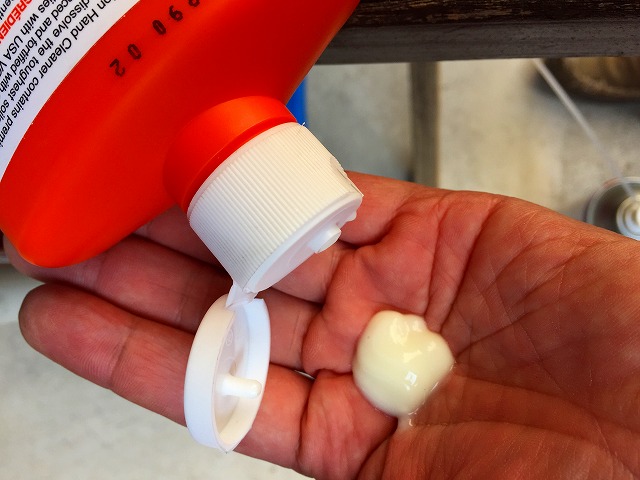 そしてこういった車・バイクいじりのメッカと言えばアメリカ!アメリカ製のハンドソープを愛用しています。前に使っていたのはFAST ORANGEという製品で果物のオレンジのエキスが入っていて柑橘系の香りがします。FAST ORANGEは少しざらざらした粒子も入っていて手のシワの間に入った汚れも落としてくれる感じでした。