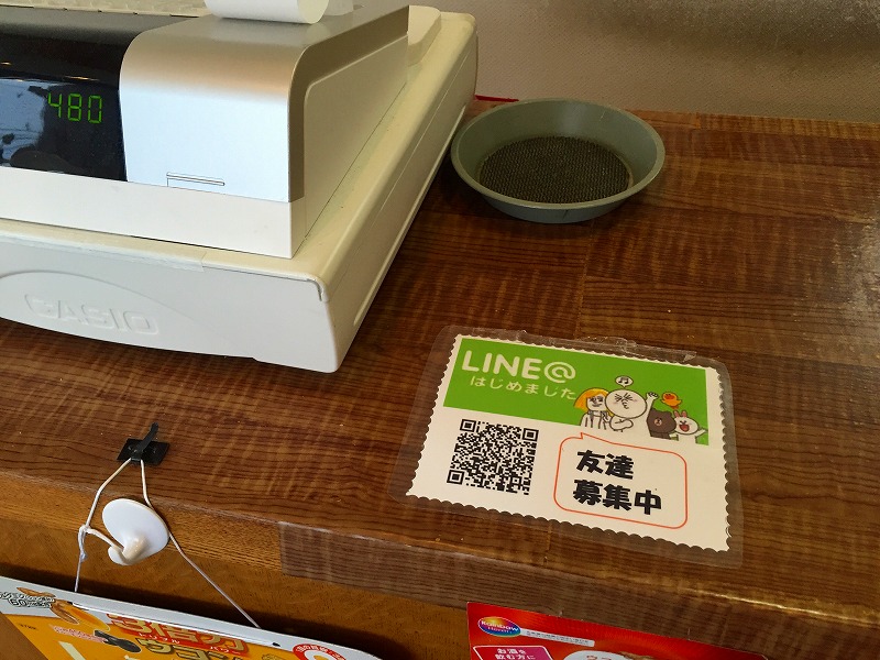 レジ横にLINEのお友達申請の張り紙をして、下ののようなチラシを店内、移動訪問先で配っています。