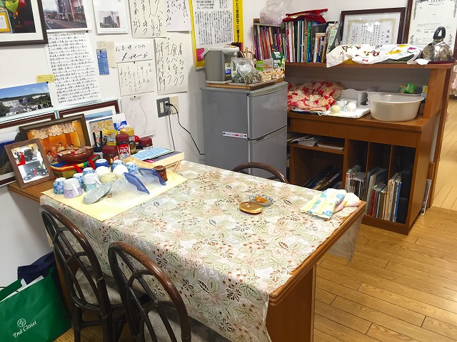 ショッピング後、店の一角に設けられた茶飲みスペースでは社長のお母さんお手製の漬物でのおもてなしもあります。この漬物は好評で、請われればレシピも提供しています。
