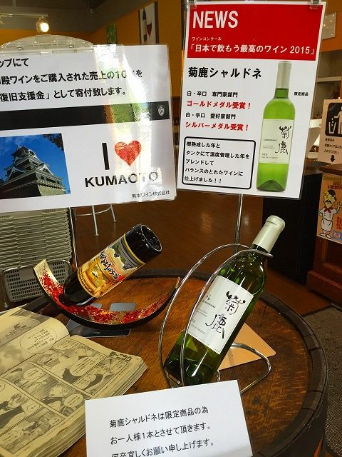 熊本というと塩尻よりかなり南、ワイン用葡萄を育てるには暖かすぎる気がしましたが、生食用葡萄からもワインを作っており、いくつもコンクールで賞を受賞してるそうです。