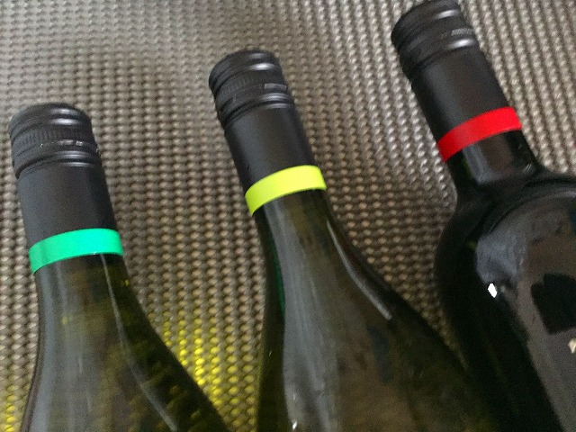 ソービニヨン・ブラン、シャルドネ、メルローの3種類あって、写真でおわかりの通りボトルのクビ部分が色分けされていてシリーズの統一感を出しています。こんな演出に弱く、全種類を購入にいたりました。(セラーがある思うと気持ちが大きくなっちゃいます。)