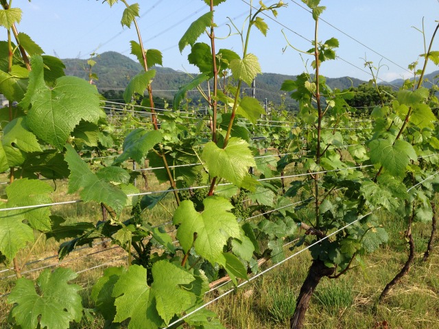 自宅からちょっと離れたところが畑になっていて、まだ若い葡萄の樹も見ることができました。