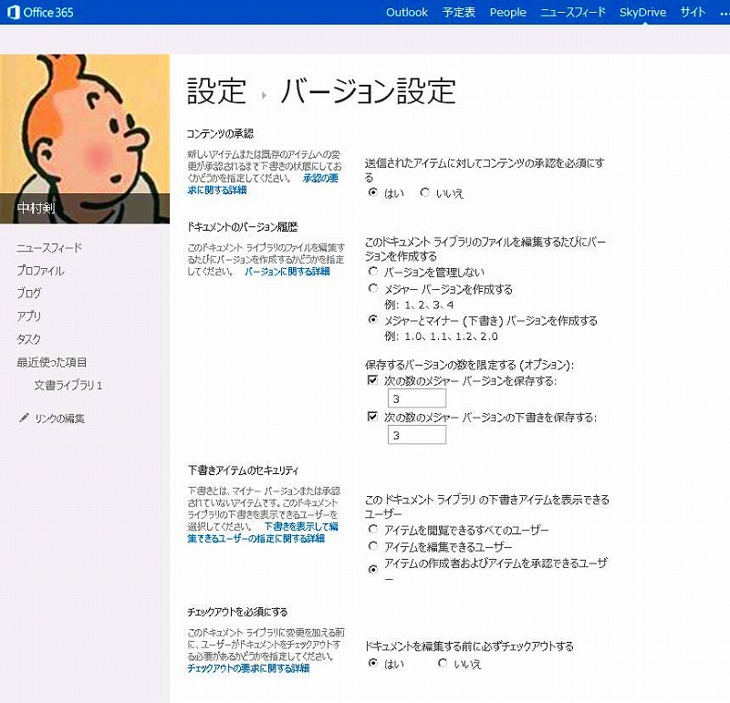 ・バージョン管理で、メジャーのみかマイナーバージョンも作るか?マイナーバージョンも作成する場合、メジャーバージョンを発行する場合に、承認機能が効いてきます。