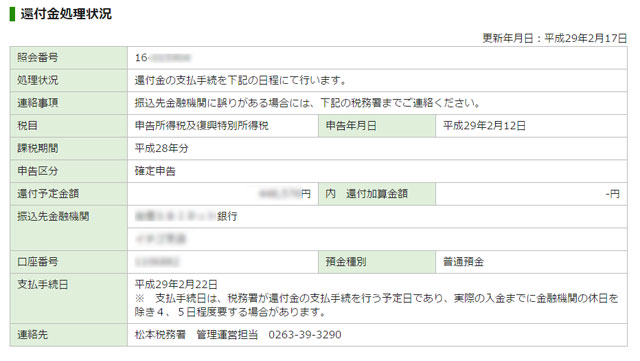 昨年もe-Taxで申告したので申告日から2週間ほどで還付金が振り込まれまれています。
