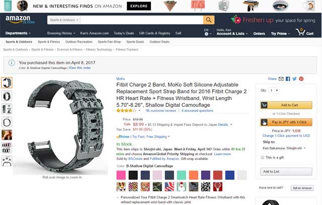 Amazon.com本家サイトを見てみると日本未発売のfitbit Chare2用の交換バンドがあるわあるわ!