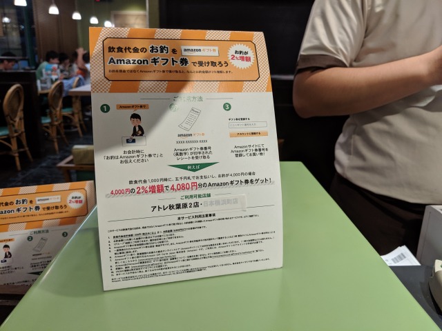 お釣をAmazonギフト券で受け取れるとサービスです。しかも2%のプレミア付きです!