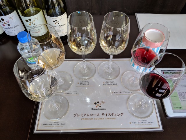 ワインギャラリーで追加のテイスティングツアー終了後にさらにテイスティングです。甲州2種類とマスカット・べーリーA2種類の合計4種類をいただきました。