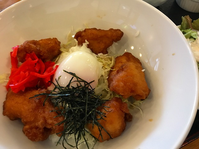 ホタルイカでも入っているのかというとそうではなく、唐揚げと半熟卵が乗っかった丼です。