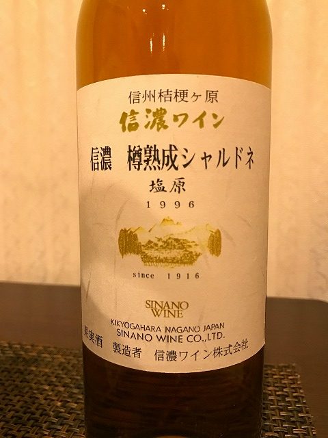 先日のワイン会の2次会で、「信濃樽熟成シャルドネ塩原1996」をみんなで飲みました。