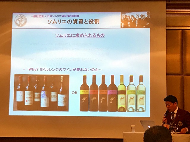 前回は日本酒がテーマで長野市まで田崎真也会長が講師のセミナーに参加しました。今回は甲府市で開催のセミナーに参加してきました。テーマは「ソムリエの資質と役割」です。