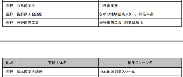 平成30年度 「潜在的創業者掘り起こし事業」の第1次認定創業スクールが公表されました。第1次分は57団体、長野県からは白馬、長野、辰野、松本の商工会・商工会議所の4団体が認定を受けました。