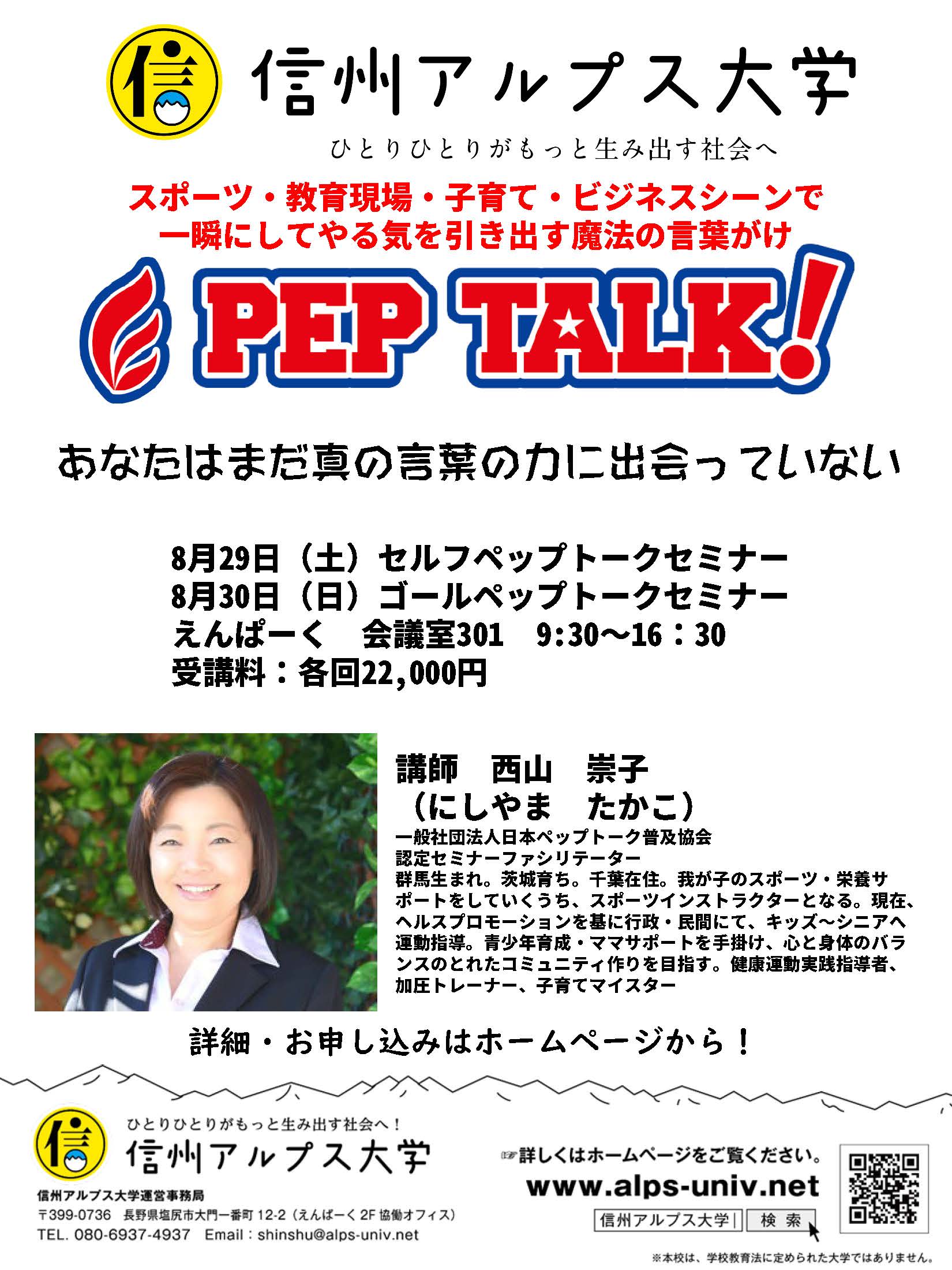 ペップトークを地元長野県塩尻市で学ぶことができます。