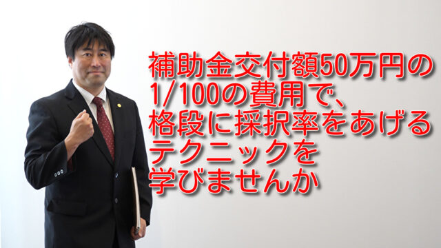 補助金交付額50万円の1/100の費用で、格段に採択率があがるテクニックを学びませんか?