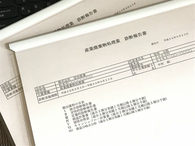 産業廃棄物処理許可申請書類は行政書司の先生が作成されますので、経営診断報告書の作成につきましても行政書司の先生を通して依頼されることをお勧めします。