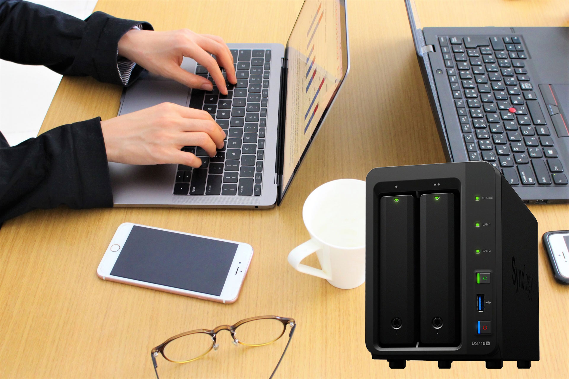会社で共通して利用するファイルをNAS(ネットワーク越しにファイルにアクセスできる仕組み)に置くことで、会社のオフィスに居なくてもどこからでも会社のファイルに安全にアクセスでき、更新の同期もとることができます。